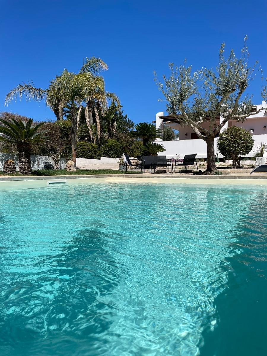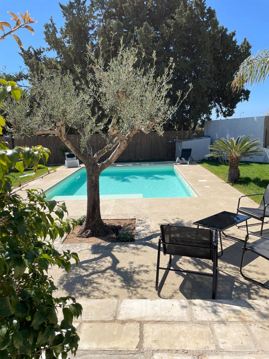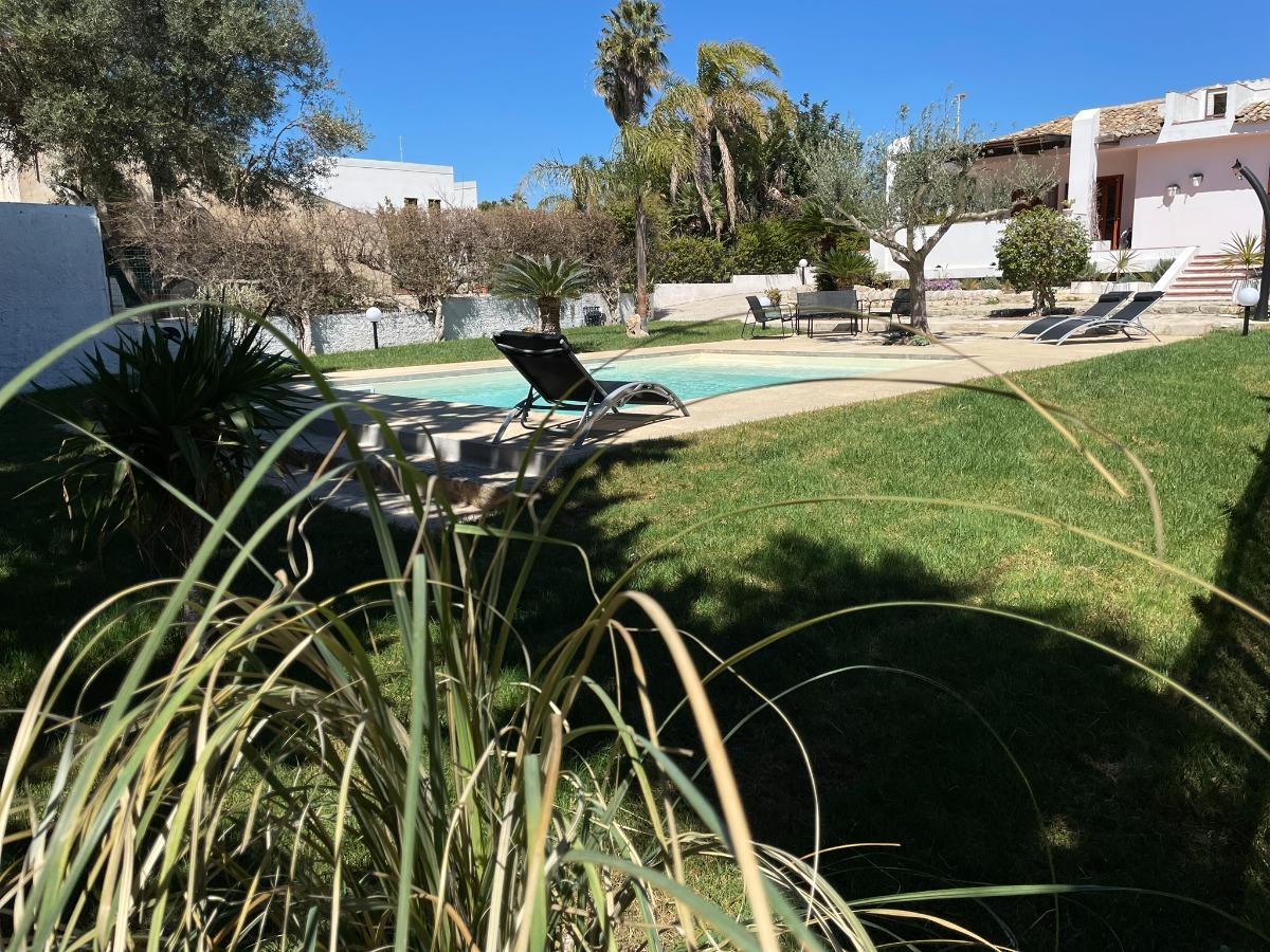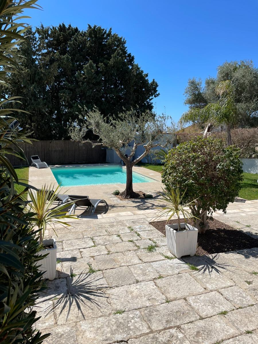 Gli spazi esterni includono una veranda attrezzata, un ampio giardino privato di 500 mq con barbecue Weber e una moderna piscina circondata da palme e piante mediterranee, completa di solarium con lettini e divanetti. La villa dispone inoltre di tre posti auto interni riservati.